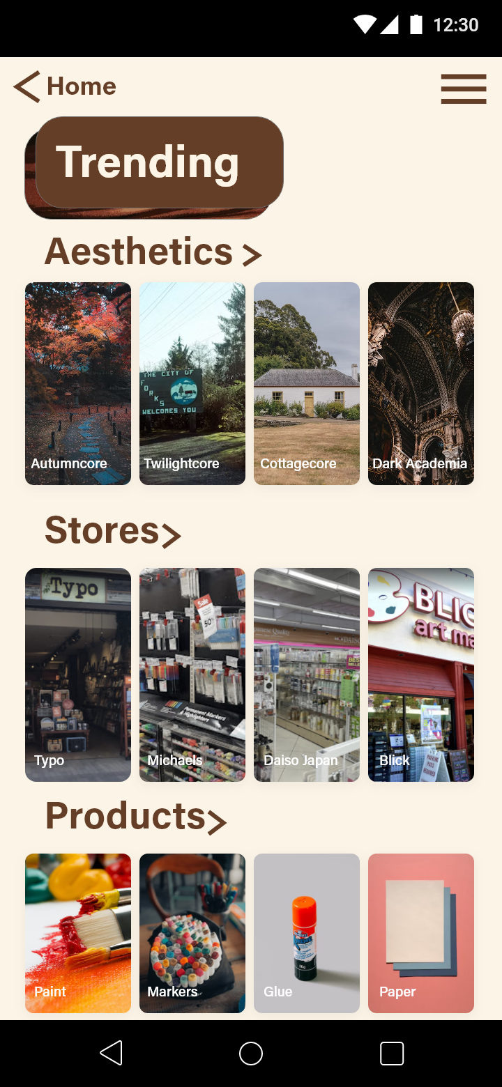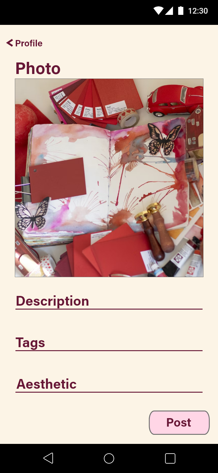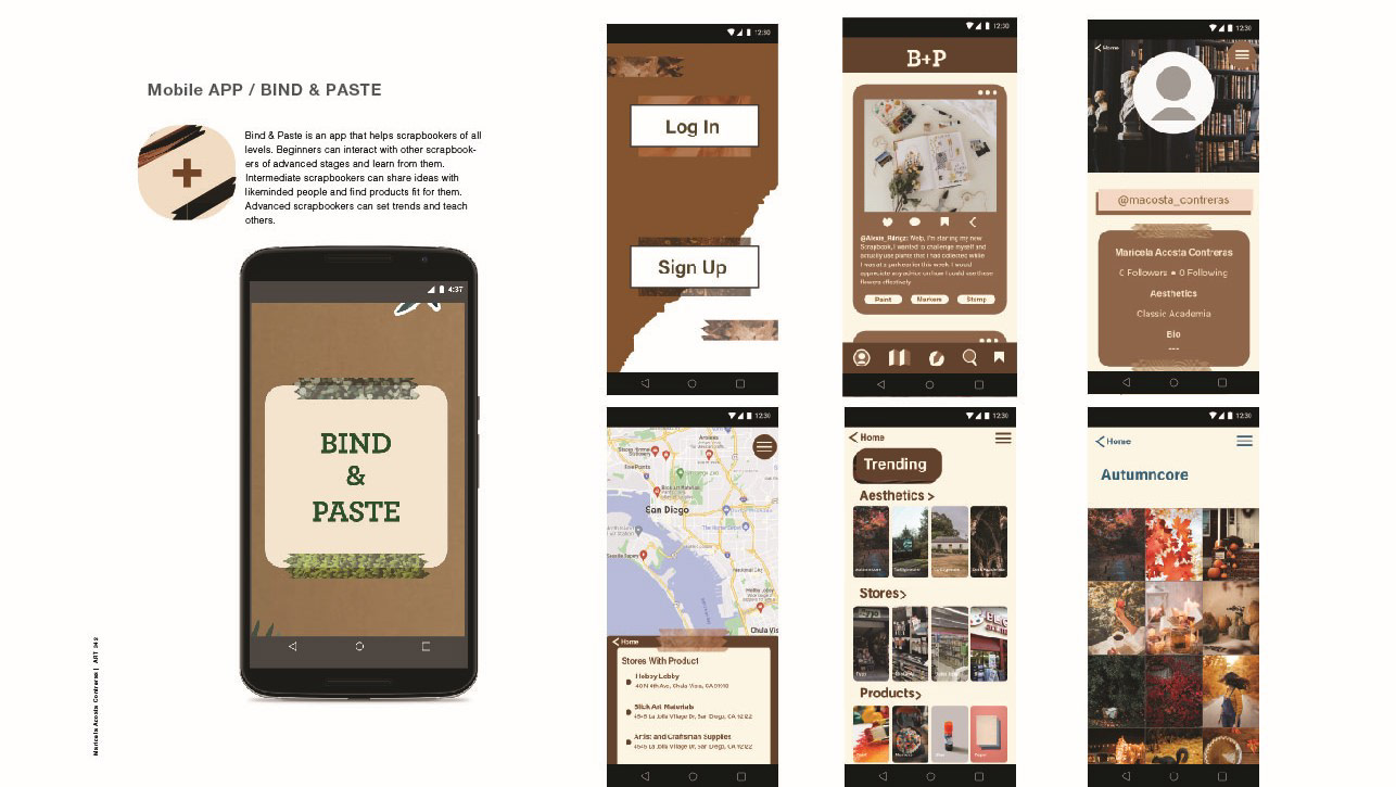 Thus for this prototype, I followed the theme of scrapbooking and enhanced it to make it seem like a scrapbooking social media that is available for all levels of scrapbookers - beginner to advanced.