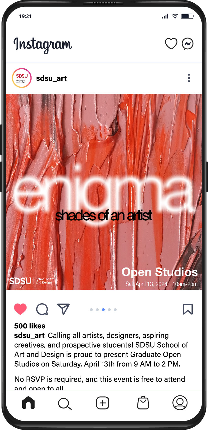 Our client asked for a poster and social media poster that was serious but also maintained the liberty of creativity. With this in mind, I ventured into textured art and applied the colors of SDSU. I titled the event ENIGMA: shades of an Artist. Being an artist is not a clear path; we often free-flow into our artworks and speak from the heart. Thus, is what inspired me to make this piece.